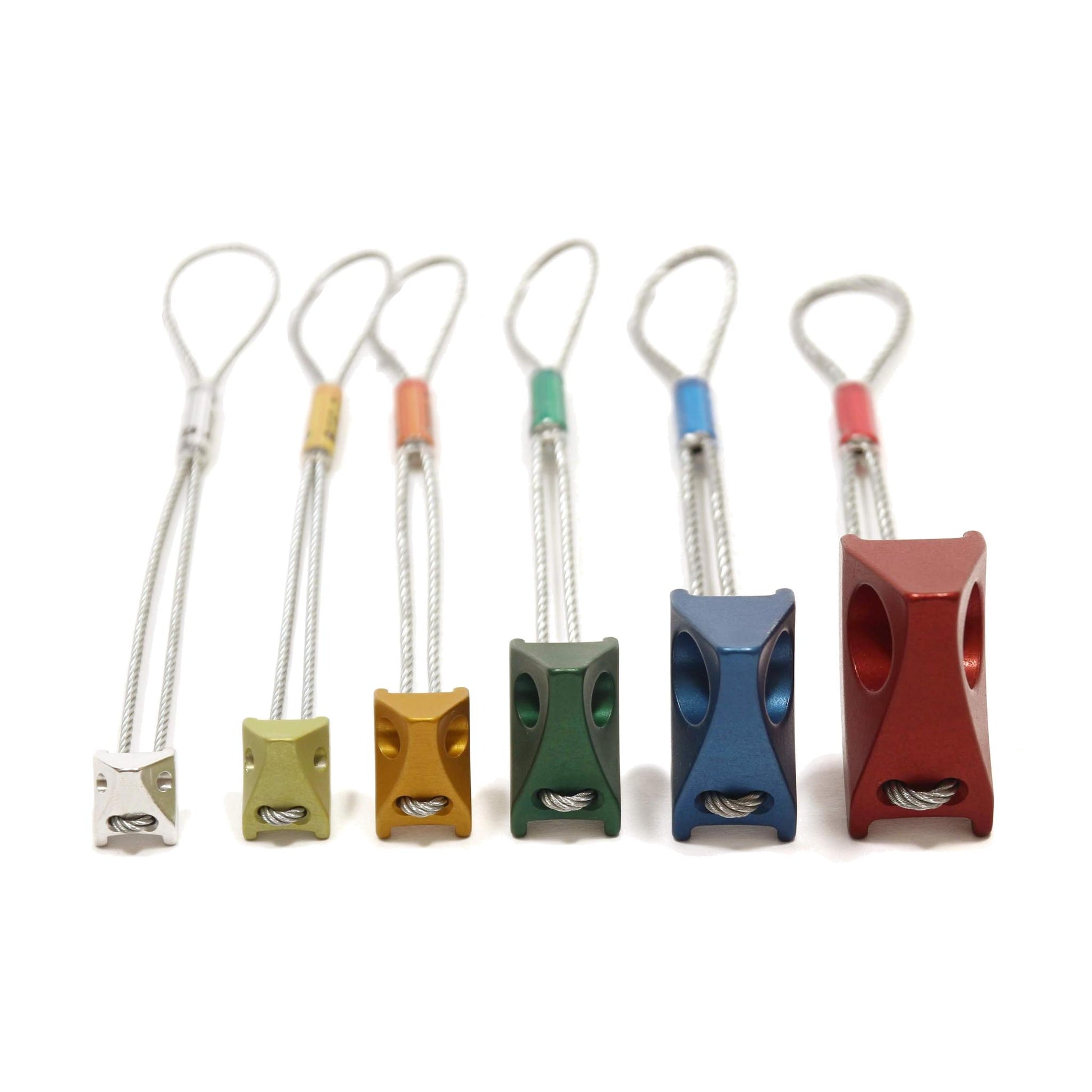 Abalaks can be placed like a typical nut, however come into their own when used as a passive camming device. The Abalak set comes in anodised and non-anodised options and are colour coded on their stem for easy recognition of size.