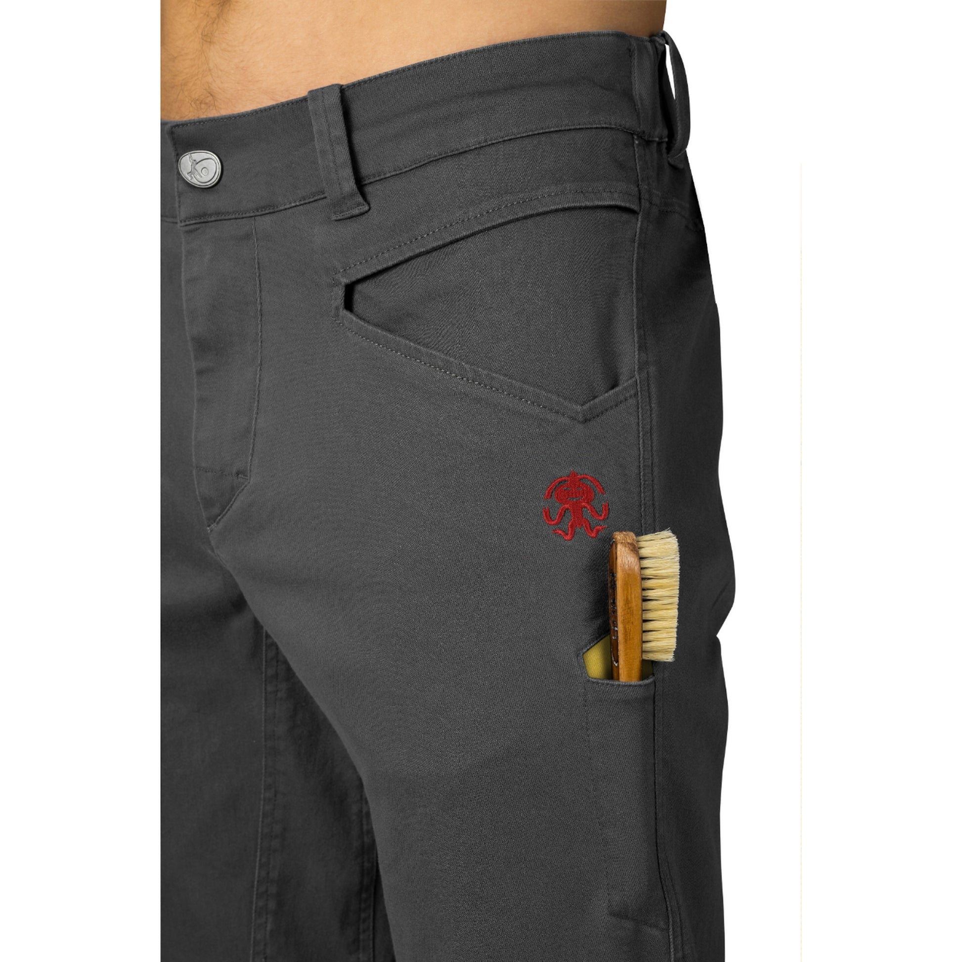 The trousers are tapered and perfected to the last detail. They have a climbing gusset in the crotch, partially elastic waistband, pre-shaped knees, a brush pocket, belt loops and internal drawstrings. We've tested the Rockland trousers while climbing, but they're still waiting for a bouldering trip to the South African Rocklands, so will you be the first to take them there?